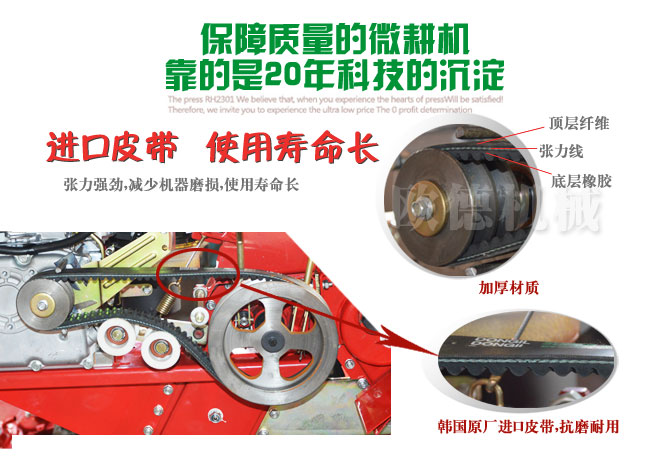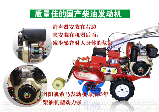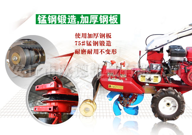 8、馬力大:發(fā)動機可配重慶涪柴、博伊頓、華偉聯(lián)龍、常柴,7.5馬力到15馬力發(fā)動機,高速工作省時。