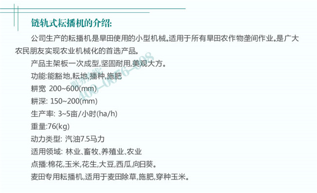 1.施肥播種:該播種盒耐磨,耐腐蝕,施肥播種時(shí)可更換內(nèi)心,適應(yīng)各種化肥種子的播量,播種量5—20斤/畝,施肥量10—80斤/畝,可適應(yīng)大田棉花、玉米施肥播種。